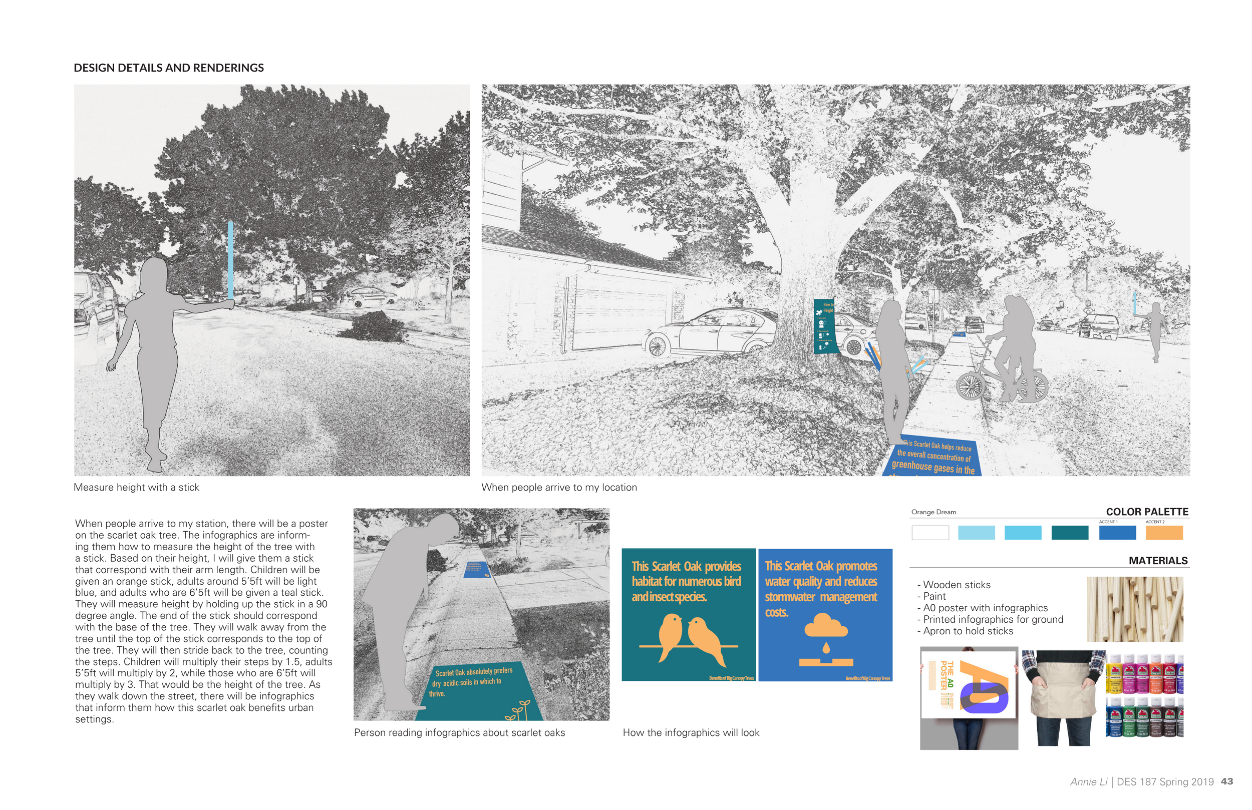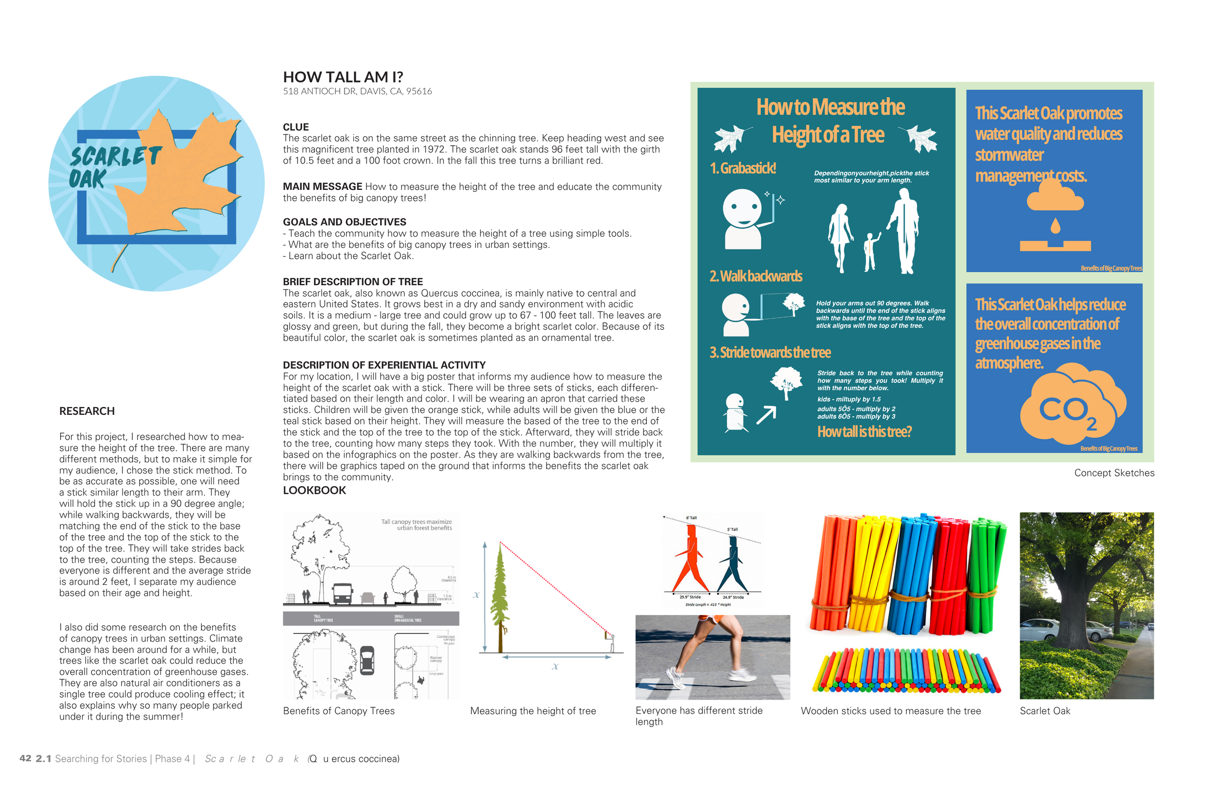 I was one of the station designers, assigned the Scarlet Oak tree at 518 Antioch Drive. My task was to transform a quiet corner of a neighborhood street into a site-specific learning environment—one that merged wayfinding, interpretation, and interaction to teach visitors how to measure a tree’s height and understand the impact of canopy trees in urban design.